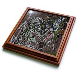 Product Description : Size: 8x8 Trivet with 6x6 ceramic tilegrafitti girl with wings Trivet is measuring 8w x 8h x .75d. Made of solid wood with padding on back that protects your furniture. Framed trivet comes with 6w x 6h ceramic gloss tile attached to the wood frame.