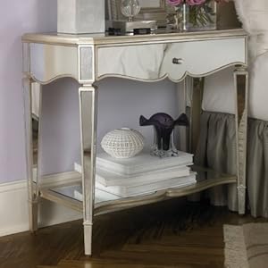 Vendor: Mirrored panelsSilver Leaf finish with a soft veiled platinum appearanceDramatic bowed and scalloped shapes Length 17.00 Height