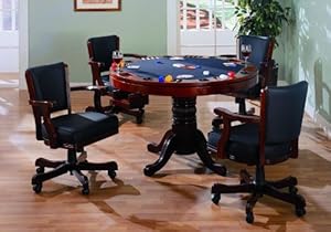 Product Description : Mitchell 3-in-1 Game Table (*Chairs Not Included). With highly functional and fun designs, this three-in-one game table will make a great addition to your home. Relaxed style is demonstrated with delicate curves and charming carved detail in the pedestal base. The finished tabletop allows you to enjoy a casual meal or sip on your morning cup of coffee. Flip the top around and you will find a 42 inch dark green felt lined card table with cup holders and chip trays. If poker isn't your game, the piece transforms into bumper pool table and includes pool sticks and balls! Collection Description: Create a game room your guests will admire with the Mitchell collection. Featuring unique game tables, comfortable game chairs, bars, and bar stools, this collection will establish a fun and inviting environment. With solid oak construction for durability, this group is available in either a cherry or oak finish to accommodate your stylistic needs. *Chairs Not Included Dimensions: 47.25" L x 47.25" W x 30.00" H 141.30 lbs.