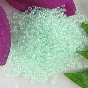 Product Description : You are buying one bag of Japanese Miyuki Rocailles seed beads in size 11/0. Color is Lt mint green lined crystal AB #11-271. Each bag weighs 10 grams. There are about 1100 beads in each bag.