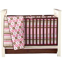 Product Description : BIDSPC10CS Features: -Cotton shell with polyester fill.-Contemporary style.-Machine washable. Includes: -10 piece crib set includes: bumper pad, comforter, crib sheet, crib skirt, mobile, valance, diaper stacker, 3 pc wall hanging set. Color/Finish: -White, Pink and Chocolate colors. Dimensions: -Dimension: 12''H x 12''W x 24''D. Collection: -Part of Mod Dots and Stripes Collection.