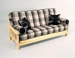 Product Description : : Unfinished full size futon sofa-bed. It's a sofa and a full-size bed PLUS our patented design allows for TWO lounge positions for added comfort in addition to the upright, seated position. Made of premium, southern yellow pine and comes unfinished so you can stain as you like to fit any decor or leave unfinished for the rustic look. Frame is rock solid, easy to assemble, easy to move and easy to convert from couch to bed and back again. Complete with a quality 8" cotton/fibre-foam futon in hunter green. Our futons use premium Fibre-Foam which has a higher resilency and a much longer life than most futons sold today. (Futon cover not included)