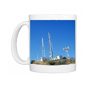 Product Description : : Size: Photo MugPhoto Mug showing Mobile phone masts. Mobile phone masts on top of a hill. Mobile telephones send and receive voice, text and image data as low-intensity microwaves. The signals are relayed through a network of antennas that are mounted on masts. The masts are typically 15 metres high with antennas that have a range of a few kilometres in rural areas. Hundreds of masts and smaller antennas are required to provide uninterrupted coverage across