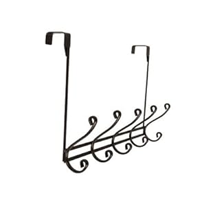 Vendor: Made of metal. 5 hooks on top and bottom for double capacity. Hangs over the door for convenient storage. Stylish look. Finish: