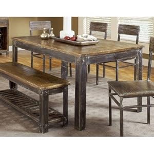 Product Description : 5M4761 Chairs, Bench, and Sideboard Not Included Features: -30" high table comfortably seats up to 6.-Matching farmhouse chair, bench, wine tower, sideboard and media console also available.-Versatile industrial design goes well with a variety of modern, craftsman and rustic decor.-Durable solid wood surface resists scratches and dents. Construction: -Constructed from mango solid wood and forged iron. Color/Finish: -Sandblasted antique walnut finish creates the rustic feel of reclaimed wood.-Forged ironwork is sealed with an oxidized finish that lends it the patina of age. Assembly Instructions: -Corner braced table legs with oversize bolts for easy assembly. Collection: -Farmhouse Collection. Warranty: -Manufacturer provides 1 Year Warranty.