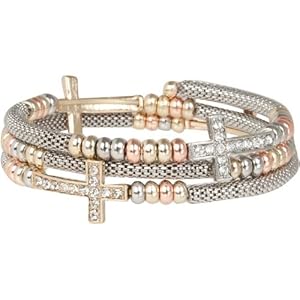 Heirloom Finds Crystal Sideways Cross Wrap Bracelet of Gold Tone Mesh with Tri Color Beads